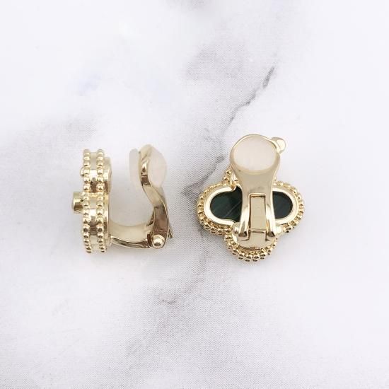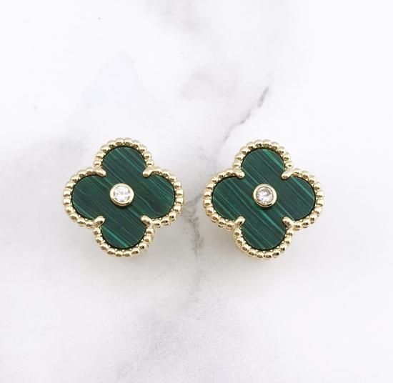 クローバーイヤリング 15mm(マラカイト)